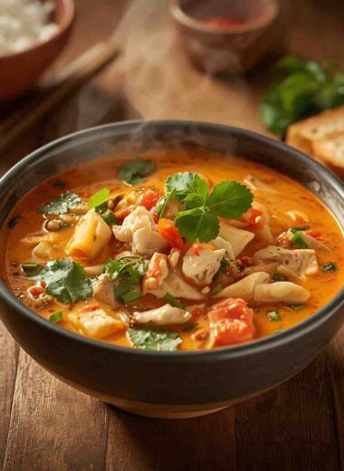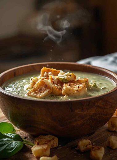 Creamy Spinach and Artichoke Soup with Garlic Croutons