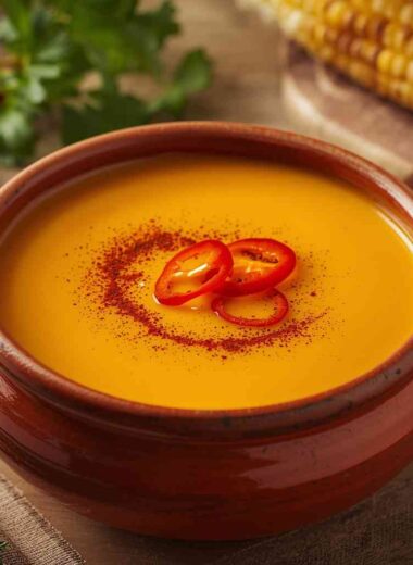 Roasted Corn and Red Pepper Soup with Smoked Paprika