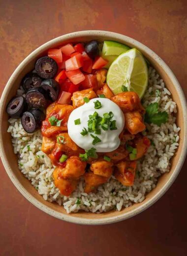Spicy Chicken Burrito Bowl with Cilantro Lime Rice