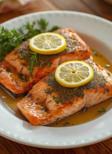 Baked Lemon Herb Salmon Fillets with Garlic Butter Sauce