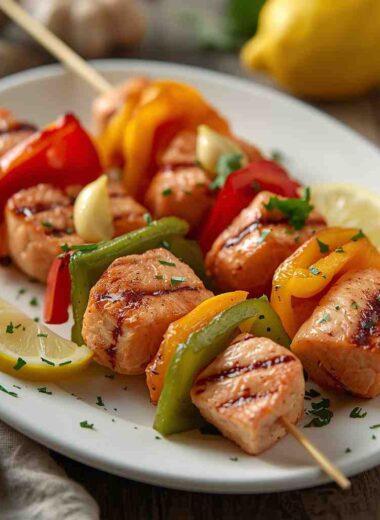 Lemon Garlic Salmon Kabobs with Colorful Bell Peppers