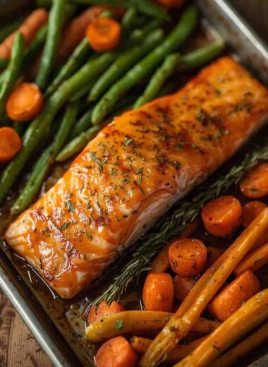 Sheet Pan Garlic Honey Salmon with Green Beans and Carrots