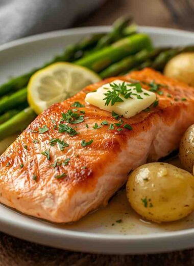 Garlic Butter Salmon with Asparagus and Baby Potatoes