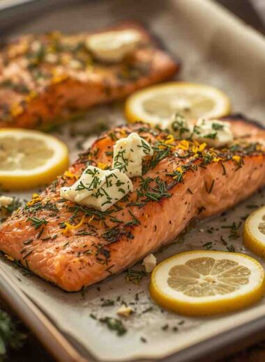 Garlic Herb Butter Baked Salmon with Lemon Slices