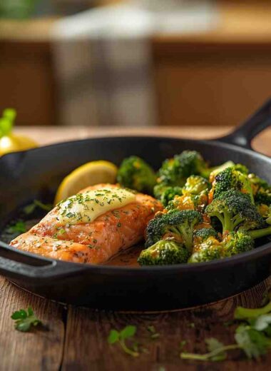 Lemon Butter Salmon Skillet with Garlic Roasted Broccoli