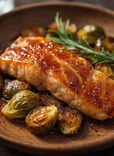 Maple Dijon Glazed Salmon with Roasted Brussels Sprouts