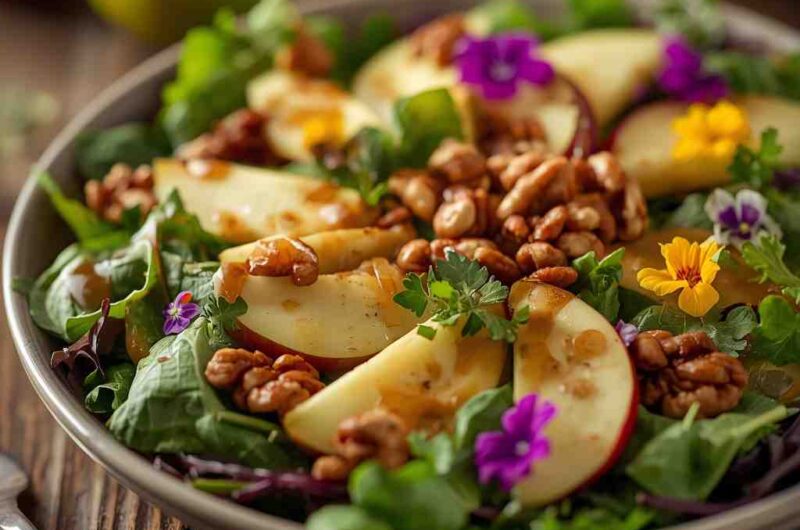 Apple Walnut Salad with Maple Dijon Dressing is a celebration of freshness, texture, and balance. The crisp apples, crunchy walnuts, and creamy cheese come together beautifully under the golden, tangy-sweet dressing. It’s elegant enough for special occasions yet simple enough for everyday meals. This salad proves that wholesome ingredients, when paired thoughtfully, can create something truly delightful. Whether enjoyed as a light lunch or a festive side dish, it’s a recipe that brings warmth, color, and flavor to every table.