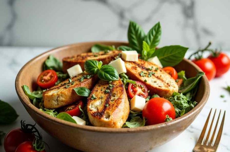Use day-old bread for the best texture, as it absorbs the dressing without becoming mushy. Let the chicken rest after cooking to keep it juicy. Add dressing gradually to control how much the bread absorbs. Fresh herbs elevate the flavor significantly, so use basil, parsley, or even oregano.