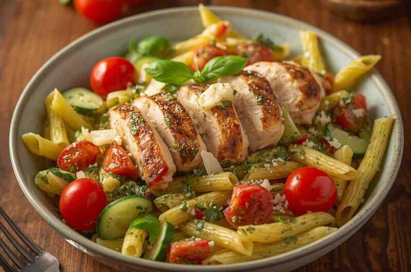 This dish is a must-try because it transforms ordinary pasta salad into a gourmet meal. The homemade or store-bought pesto adds a fresh, nutty, and aromatic flavor that pairs perfectly with chicken and vegetables. It’s versatile, easy to prepare, and can be customized with seasonal vegetables or different pasta shapes.