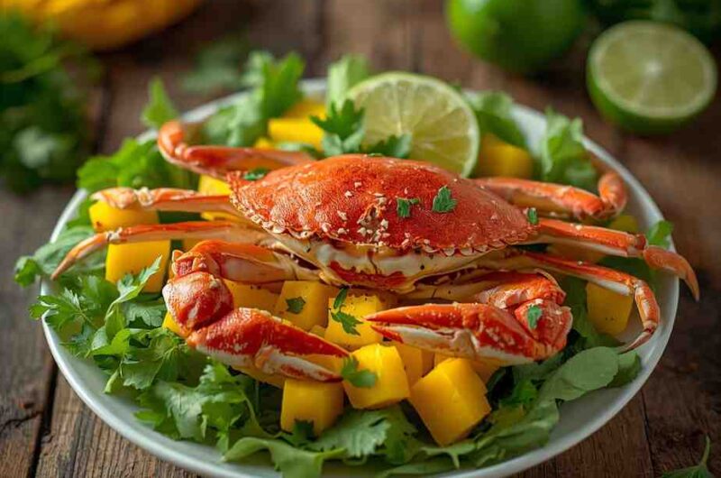 Crab and Mango Salad with Lime is a refreshing, light, and vibrant dish that beautifully balances sweet, tangy, and savory flavors. This salad brings together delicate crab meat, juicy ripe mango, crisp vegetables, and a zesty lime dressing that lifts the entire dish.