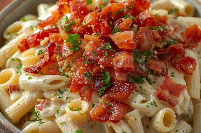 It’s ideal for picnics, potlucks, barbecues, or as a side dish to complement grilled meats. The creamy dressing clings beautifully to the pasta, while the bacon adds a smoky, salty crunch that elevates every bite. Adding fresh vegetables like cherry tomatoes, bell peppers, and red onions adds color, texture, and a burst of freshness that balances the richness of the dressing.