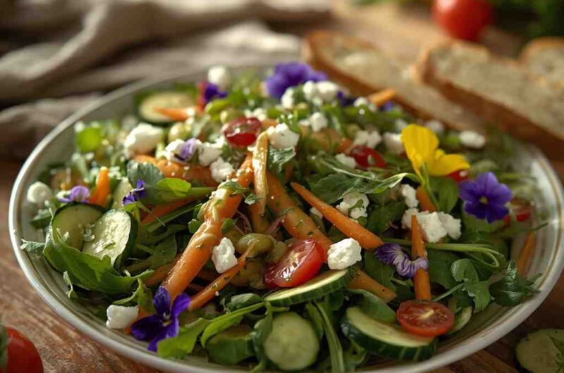 A Garden Salad with Lemon Herb Dressing is a timeless classic that celebrates the freshness and vibrancy of seasonal vegetables. Crisp greens, juicy tomatoes, crunchy cucumbers, and sweet bell peppers come together in harmony, dressed with a zesty lemon herb vinaigrette that brightens every bite. This salad is the ultimate symbol of clean, wholesome eating — light, refreshing, and full of color.