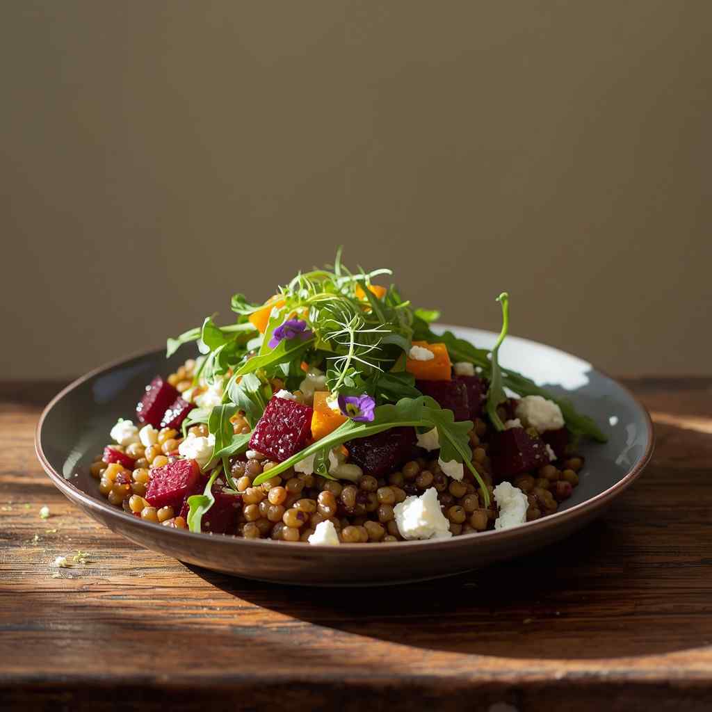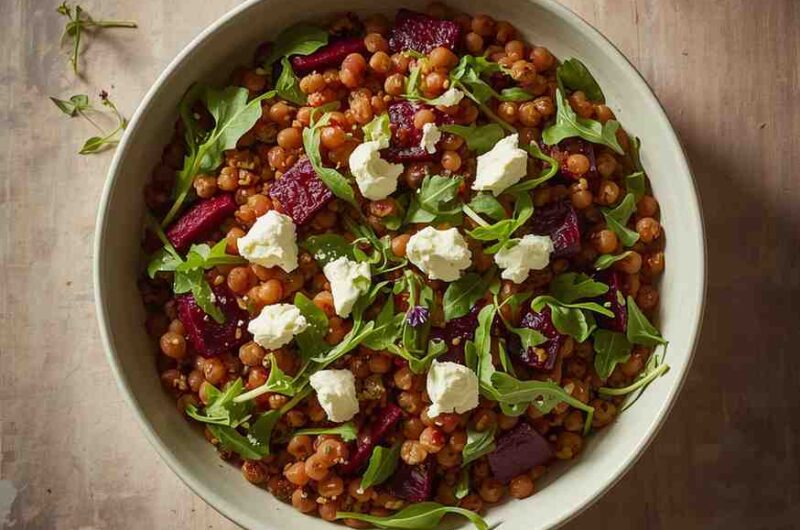 Lentil and Roasted Beet Salad with Goat Cheese is a beautiful and wholesome dish that celebrates the earthy sweetness of roasted beets, the nutty depth of lentils, and the creamy tang of goat cheese. It’s a salad that feels as elegant as it is nourishing — striking a perfect balance between rustic comfort and sophisticated flavor. Every bite offers a delightful contrast of textures: tender lentils, silky beets, crisp greens, and crumbled cheese that melts just slightly when it hits the warm ingredients.