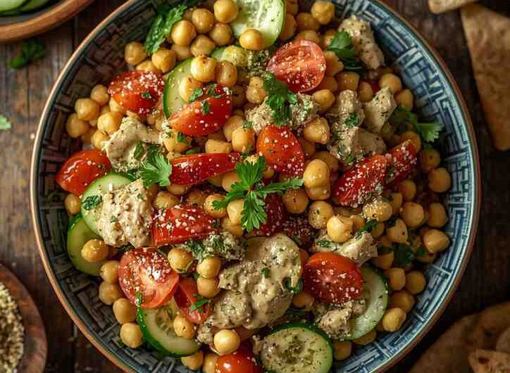 Inspired by the flavors of the Mediterranean, this salad is light yet satisfying, offering a balance of textures and tastes — creamy chickpeas, crunchy vegetables, tangy feta, and fragrant herbs. It’s perfect for meal prep, picnics, or as a side dish for grilled meats and seafood.