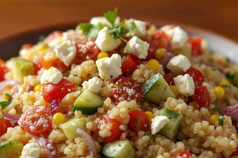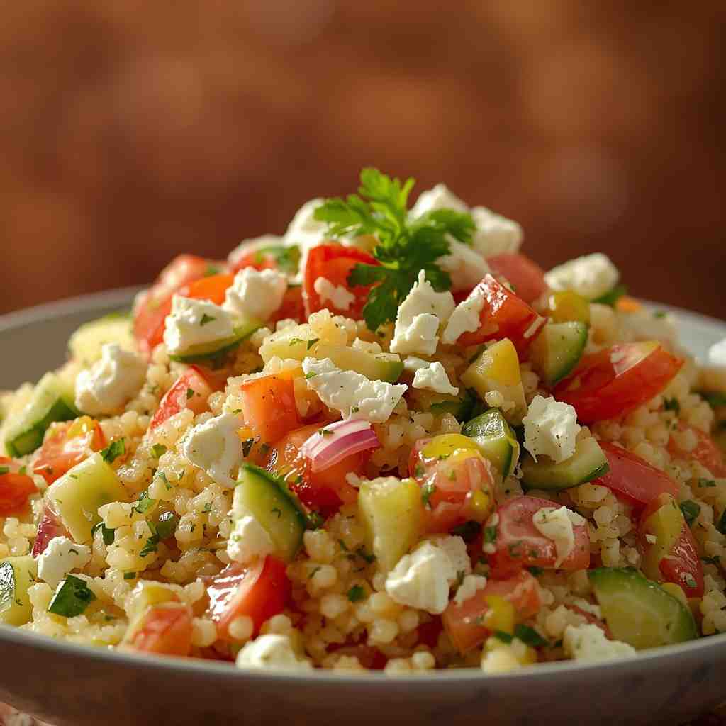 The Mediterranean Couscous Salad with Feta is a light, refreshing, and incredibly flavorful dish that celebrates the essence of Mediterranean cuisine — vibrant colors, fresh vegetables, tangy feta cheese, and zesty lemon dressing. This salad perfectly balances flavor, texture, and nutrition, making it an ideal meal for warm days, picnics, or as a satisfying side dish for grilled meats or seafood.