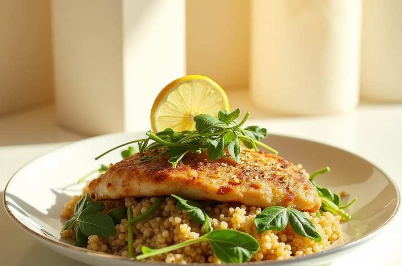 Quinoa Chicken Salad with Lemon Vinaigrette is a fresh, wholesome dish that brings together lean protein, whole grains, and bright citrus flavors in one satisfying bowl. This recipe is inspired by Mediterranean-style eating, where simple ingredients are allowed to shine through clean, vibrant flavors.
