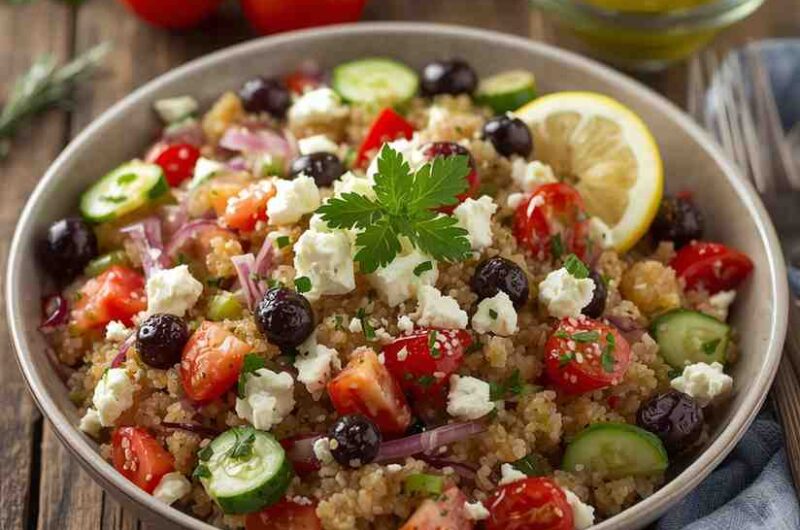 The Quinoa Greek Salad with Lemon Vinaigrette is a healthy, refreshing, and protein-packed salad perfect for any occasion. It combines the nutty flavor of quinoa with crisp vegetables, briny olives, and creamy feta, all enhanced by a bright, zesty lemon dressing.