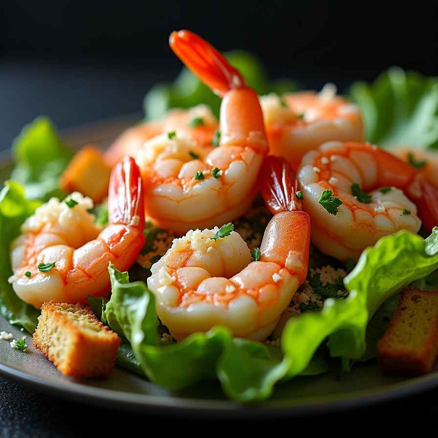 - Step 6: Top the salad with cooked shrimp, crispy croutons, and extra Parmesan cheese.