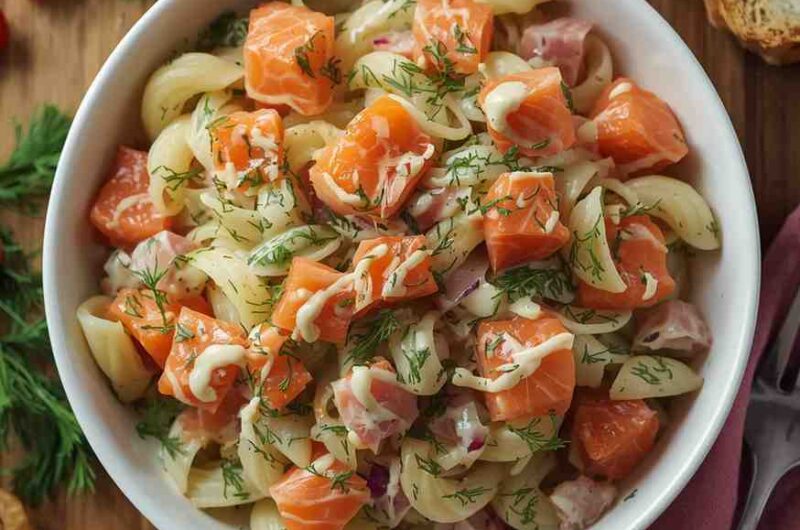 Smoked Salmon Pasta Salad with Dill Dressing is a refreshing, elegant dish that combines tender pasta, smoky salmon, crisp vegetables, and a creamy, tangy dill dressing. Perfect for light lunches, brunches, or picnics, this salad balances the rich flavors of smoked salmon with the bright, herby freshness of dill and lemon.
