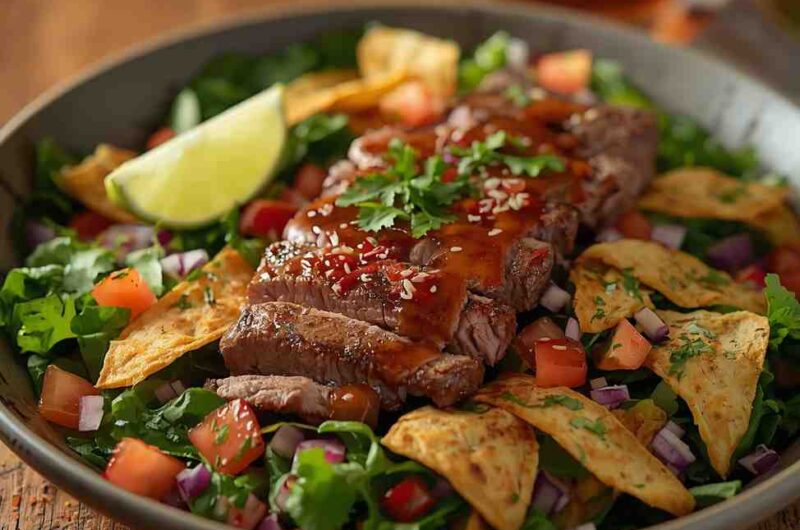 This salad delivers a perfect balance of freshness and indulgence. The juicy steak provides a satisfying richness, while the veggies and dressing bring freshness, spice, and tang. It’s ideal for lunch, dinner, or even as a show-stopping entrée for guests.