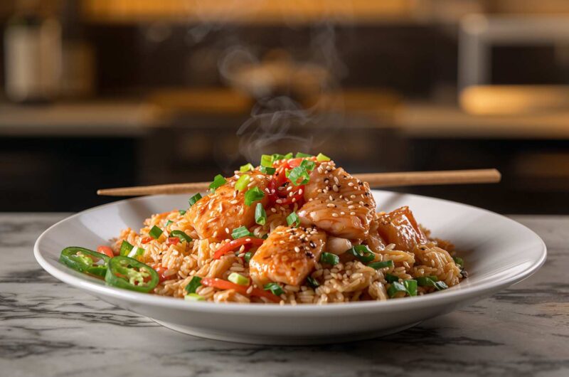 Unlike traditional fried rice, this version incorporates protein-rich salmon, giving it a gourmet twist while staying nutritious. The combination of flaked salmon, crisp vegetables, and fluffy rice tossed in a subtle teriyaki sauce makes it a balanced, satisfying meal that both adults and kids will enjoy.