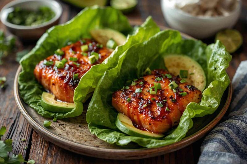 Teriyaki Salmon Lettuce Wraps with Cucumber and Avocado are a fresh, healthy, and flavor-packed meal that’s perfect for light lunches, dinners, or entertaining guests. The combination of sweet-savory teriyaki salmon, crisp lettuce, creamy avocado, and crunchy cucumber makes each bite deliciously satisfying and visually appealing. Quick to prepare, versatile, and nutrient-rich, this recipe is a must-try for anyone looking for a healthy, gourmet-style meal at home.