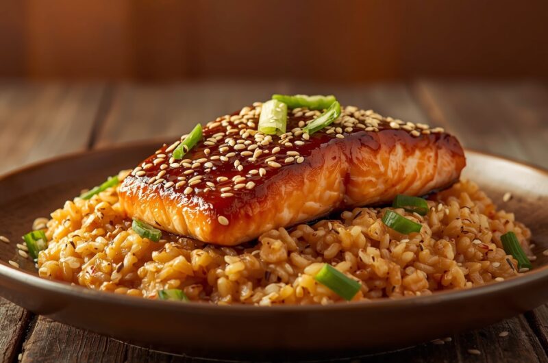 The combination of sweet teriyaki sauce, umami soy, and perfectly cooked salmon makes this meal a family favorite. It’s quick enough for a weeknight dinner but elegant enough to serve for guests or special occasions. The sesame rice adds a nutty, aromatic element that complements the rich, caramelized salmon perfectly.
