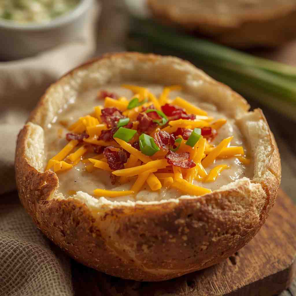 The soup’s base of tender potatoes, simmered in a savory broth and enriched with milk and cream, provides a luscious texture, while melted cheddar cheese adds sharpness and depth. Crispy bacon brings smoky flavor, and garnishes like green onions and sour cream make every bite flavorful and visually appealing.