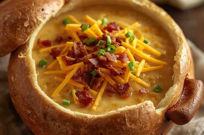 The soup’s base of tender potatoes, simmered in a savory broth and enriched with milk and cream, provides a luscious texture, while melted cheddar cheese adds sharpness and depth. Crispy bacon brings smoky flavor, and garnishes like green onions and sour cream make every bite flavorful and visually appealing.