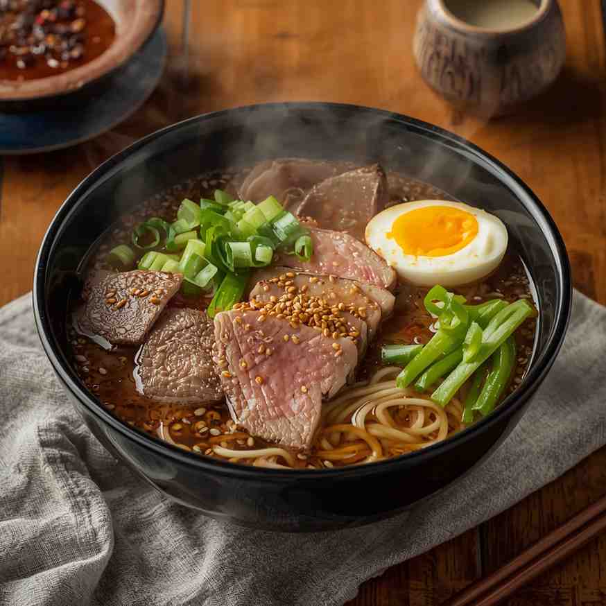 • Step 5: Assemble the Bowls : Divide the cooked noodles evenly into serving bowls. Ladle the hot beef and vegetable broth over the noodles. Top each bowl with green onions, a soft-boiled egg (if using), and a sprinkle of sesame seeds.