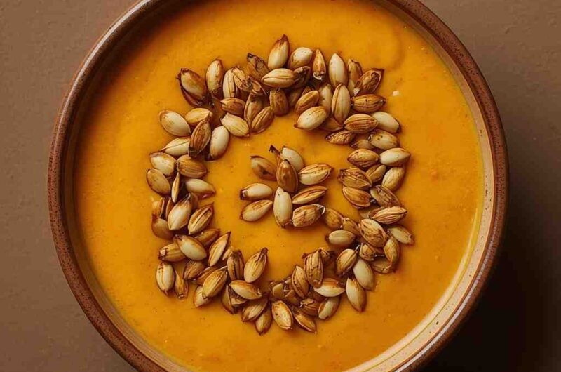 Butternut Squash Soup with Toasted Pumpkin Seeds is a velvety, comforting soup perfect for crisp autumn days and cozy dinners. Roasted butternut squash forms a naturally sweet and creamy base, complemented by onions, garlic, and a hint of warming spices like nutmeg and cinnamon. Topping the soup with toasted pumpkin seeds adds a delightful crunch and nutty flavor, transforming a simple soup into a visually appealing and satisfying dish.