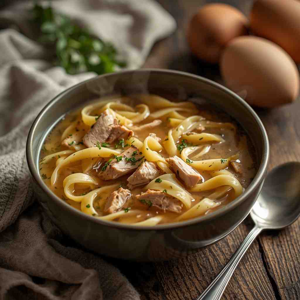 Chicken Noodle Soup with Egg Noodles is more than just a recipe—it’s a bowl of comfort, warmth, and nostalgia. Simple yet deeply flavorful, it’s perfect for cozy nights or when you need a nourishing, restorative meal. The tender chicken, comforting noodles, and aromatic broth come together to create a timeless classic that never fails to satisfy. Whether served to soothe a cold or to share at the family table, this soup embodies everything homemade cooking stands for: warmth, love, and wholesome goodness in every spoonful.