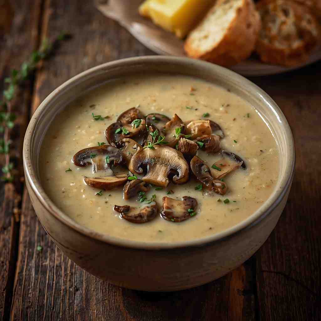 • Step 6: Serve : Ladle soup into bowls. Garnish with fresh thyme, sautéed mushroom slices, or a drizzle of cream. Serve hot with crusty bread, garlic toast, or a side salad.