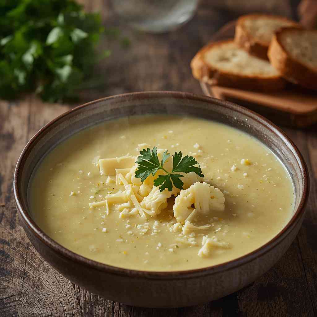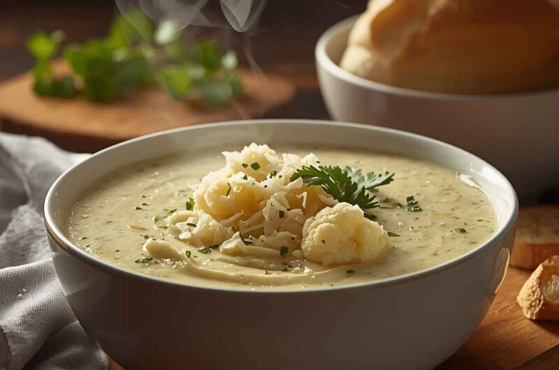 Creamy Garlic Cauliflower Soup with Parmesan is proof that simple ingredients can make the most comforting and elegant dishes. It’s smooth, flavorful, and soul-soothing — a blend of roasted garlic sweetness, nutty Parmesan, and creamy cauliflower that delights with every spoonful.