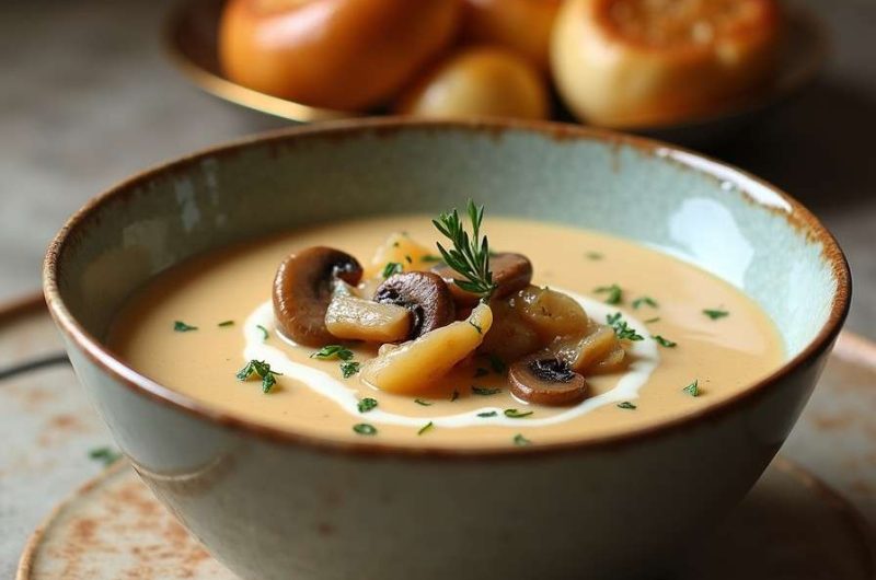 The combination of sautéed mushrooms and onions creates a deep, savory flavor base, while cream adds a luxurious texture that coats every spoonful. Enhanced with aromatic herbs and a touch of garlic, this soup is both soothing and elegant—a timeless classic that appeals to vegetarians and meat-eaters alike.