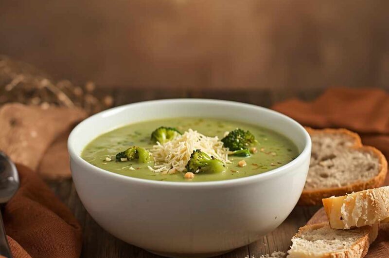 Serve Creamy Parmesan Broccoli Soup hot in bowls. Pair with crusty bread, garlic bread, or a fresh green salad for a complete meal. It also works as a side dish for roasted chicken or sandwiches.