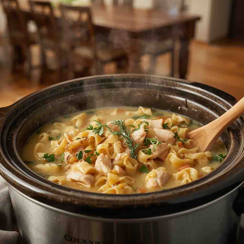 - Step 5: Add Noodles : Add noodles and cook on HIGH for 15–20 minutes until al dente.