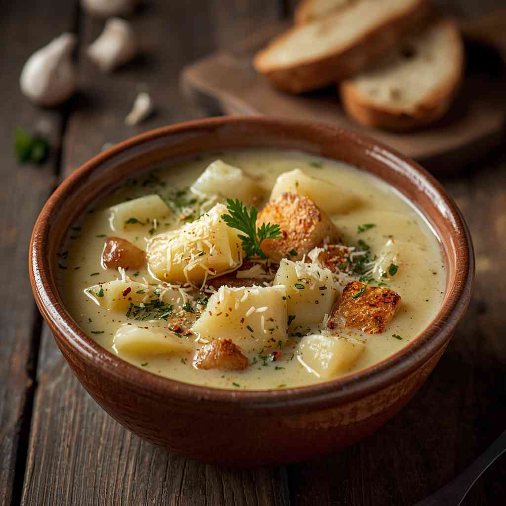 This soup is perfect for a cozy weeknight dinner, a starter for a special meal, or meal prep for the week. The combination of garlic and Parmesan adds depth, while the potatoes provide a creamy base without needing heavy thickeners. Garnished with fresh herbs or extra Parmesan, this soup is both elegant and comforting.