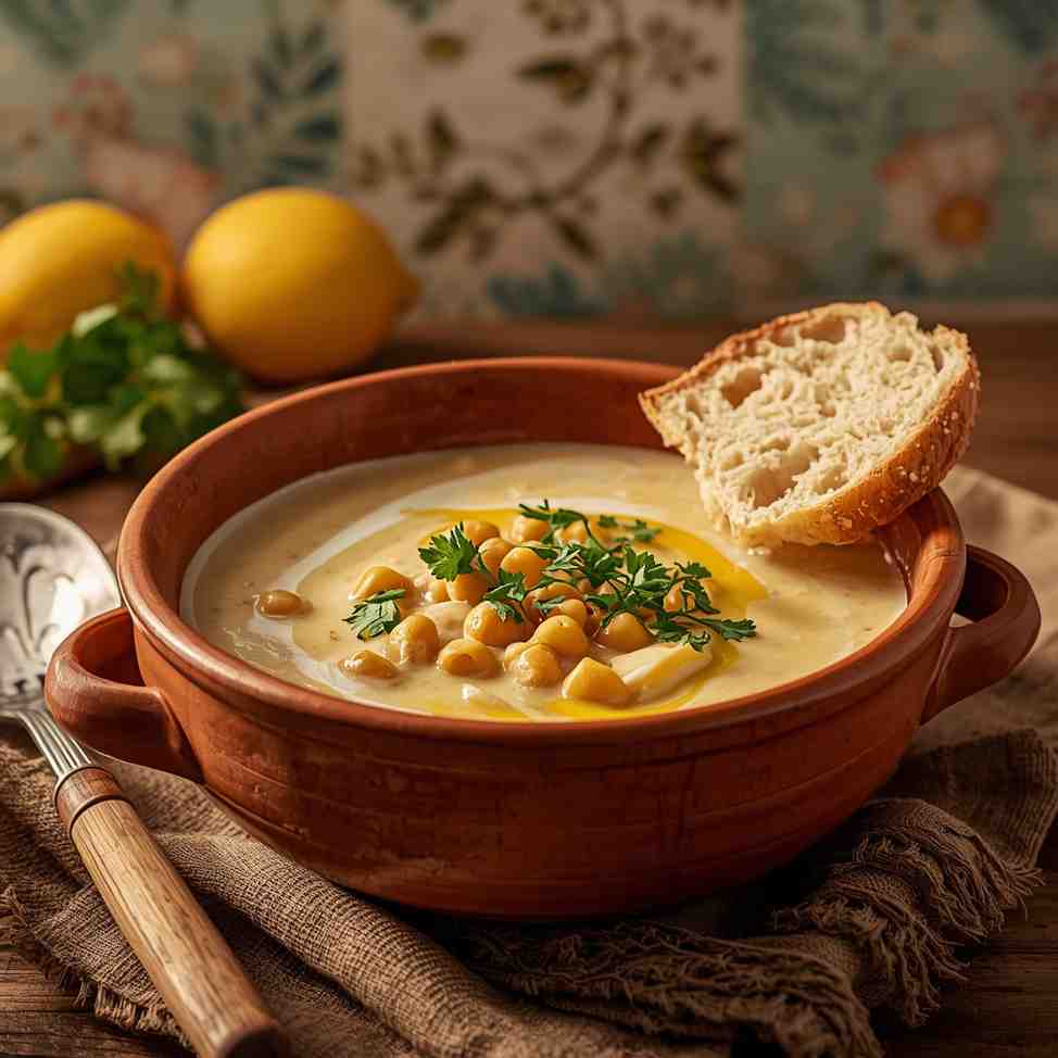 The soup is naturally vegan, gluten-free, and packed with protein and fiber. What makes it so special is the combination of tender chickpeas, aromatic herbs, and bright, tangy lemon juice. Despite its simplicity, it delivers layers of flavor and a creamy texture without any dairy. Each spoonful is heartwarming, vibrant, and deeply satisfying—a perfect reflection of Mediterranean cooking at its best.