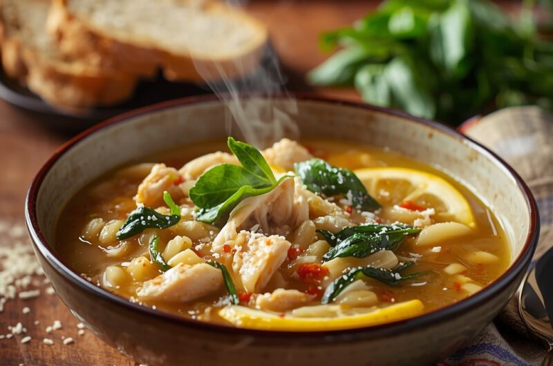 Lemon Chicken Orzo Soup with Spinach