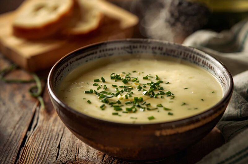 Potato Leek Soup with Chives is a classic, comforting soup that’s creamy, velvety, and perfect for chilly days. This French-inspired dish combines tender potatoes and mild, sweet leeks simmered in a flavorful broth, then pureed to create a smooth, luscious texture. Fresh chives add a subtle oniony note and a pop of color, enhancing the visual appeal and flavor of this timeless soup.