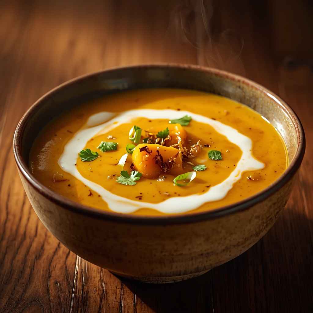 Pumpkin Curry Soup with Coconut Cream is a rich, velvety, and aromatic soup inspired by Southeast Asian flavors. It combines the natural sweetness of pumpkin with savory curry spices and luxurious coconut milk, creating an irresistible balance of warmth and creaminess.
