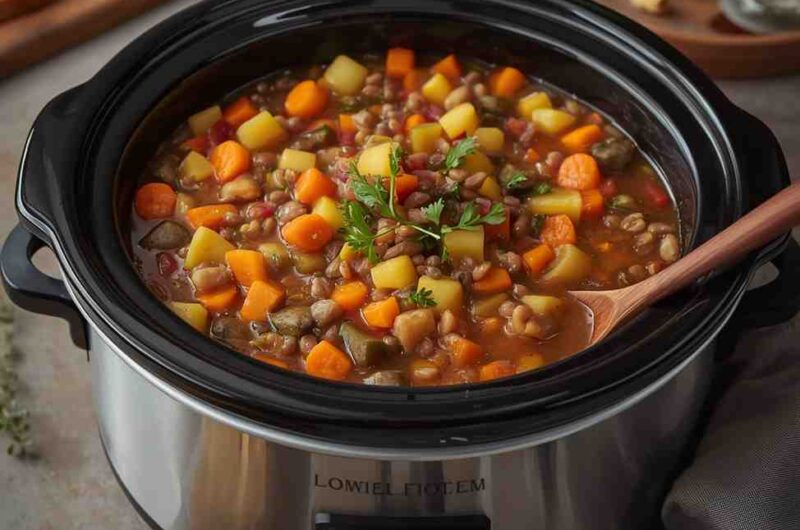 Vegetables, lentils, and herbs create a balanced flavor profile, while the slow cooking enhances taste and texture. It’s also highly versatile—perfect for vegetarians, vegans, and anyone looking to enjoy a comforting, plant-based dish with minimal effort.