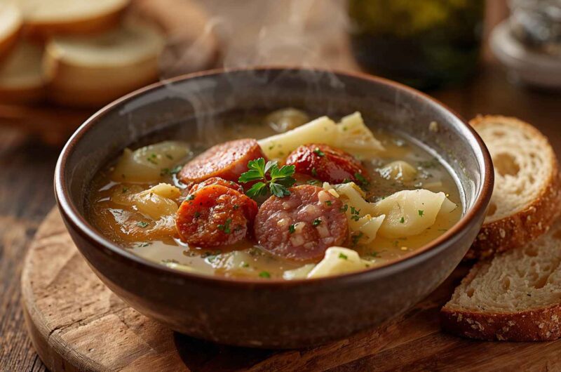 This soup perfectly balances smokiness, savoriness, and comforting warmth in every spoonful. The smoked sausage provides a rich, bold flavor that infuses the broth, while the cabbage softens to bring a subtle sweetness and tender texture. Carrots, celery, and onions add aromatic depth, making each bite both satisfying and nourishing.