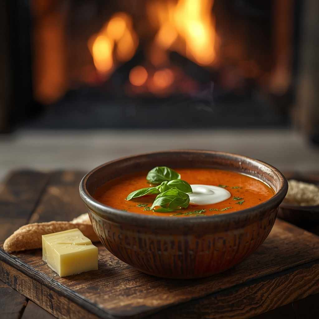 • Step 4: Add Basil and Finish : Roughly tear basil leaves and stir into the soup. Optionally stir in 1 tablespoon butter or a splash of cream for silkiness. Simmer for 1–2 additional minutes and adjust seasonings.