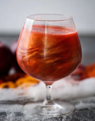 Not only does it look hauntingly beautiful in a glass, but it also tastes like autumn in every sip—sweet, spiced, warming, and slightly sinful. It’s the perfect party drink that balances seasonal comfort with spooky drama.