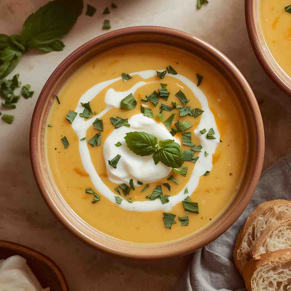 Presentation Tip: Serve in white bowls to highlight the soup’s golden hue and garnish with bright green basil for contrast.