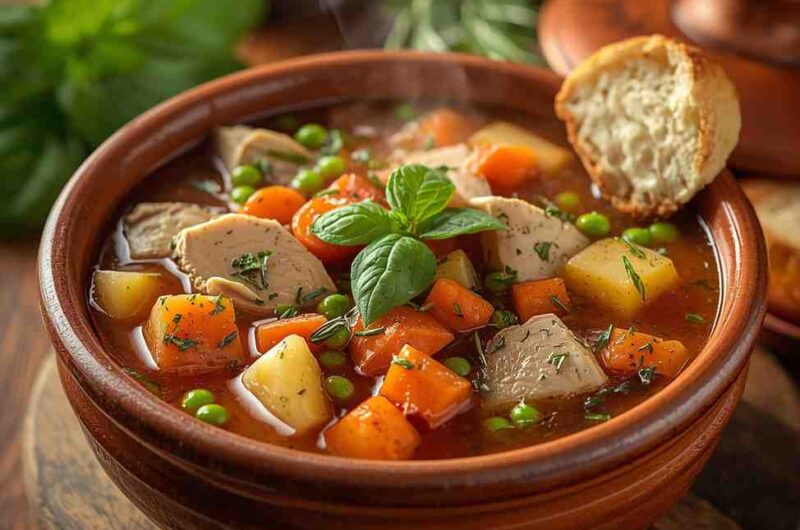 Turkey and Vegetable Soup with Fresh Herbs is a wholesome, hearty, and nutrient-packed soup that’s perfect for cozy weeknights, meal prep, or using up leftover turkey. Tender pieces of turkey mingle with a medley of fresh vegetables like carrots, celery, and zucchini, while aromatic herbs such as thyme, parsley, and dill elevate the flavors.