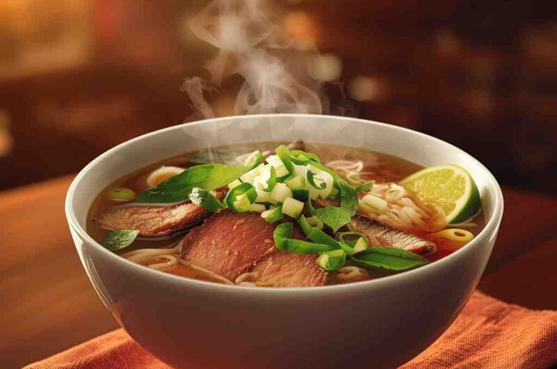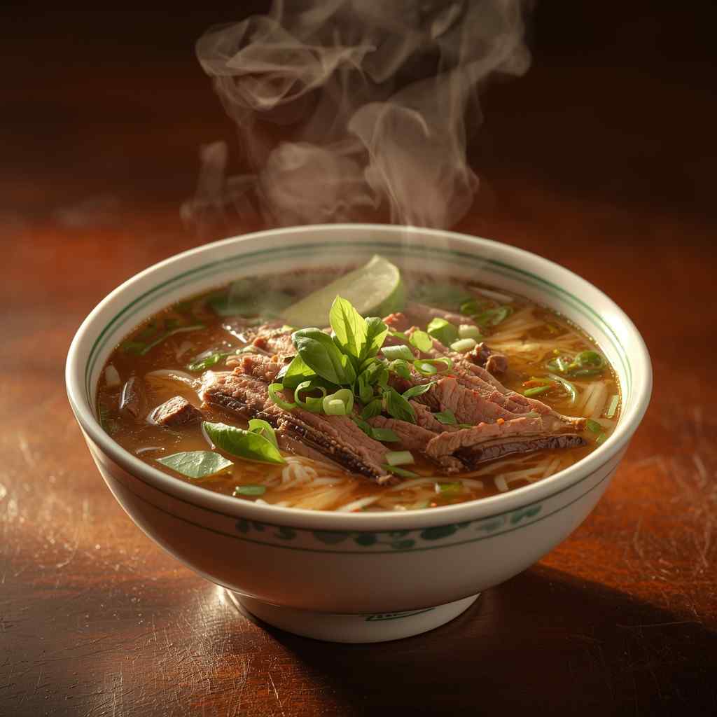 I love this recipe because it perfectly represents harmony in a bowl. The long-simmered broth fills the kitchen with an intoxicating aroma of roasted spices, while the thin slices of beef cook delicately in the hot broth, ensuring melt-in-your-mouth tenderness.