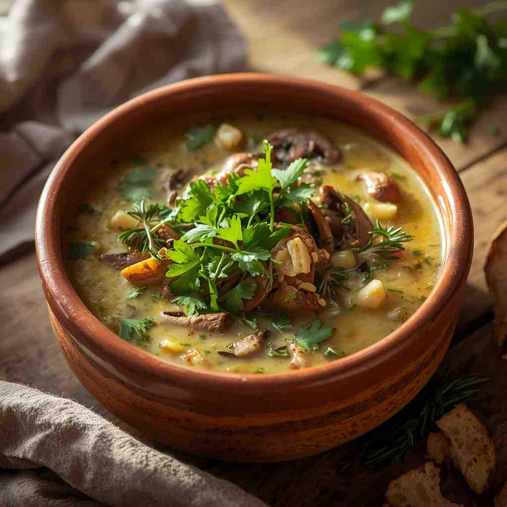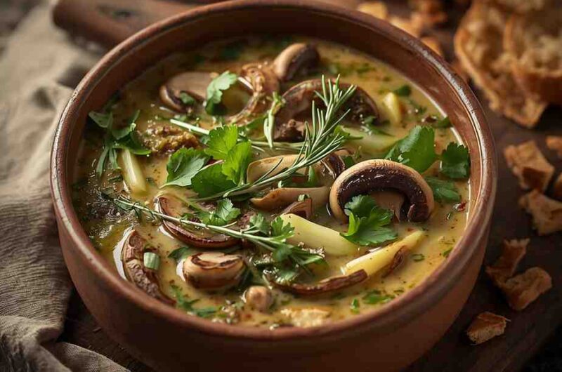 Wild Mushroom and Leek Soup with Fresh Herbs is a comforting, earthy, and aromatic dish that feels like a warm hug in a bowl. Made with a variety of wild mushrooms, tender leeks, and a delicate blend of fresh herbs, this soup celebrates the natural flavors of the forest in the most elegant way. The mushrooms bring a deep umami richness, the leeks add a subtle sweetness, and the herbs infuse the broth with vibrant freshness.
